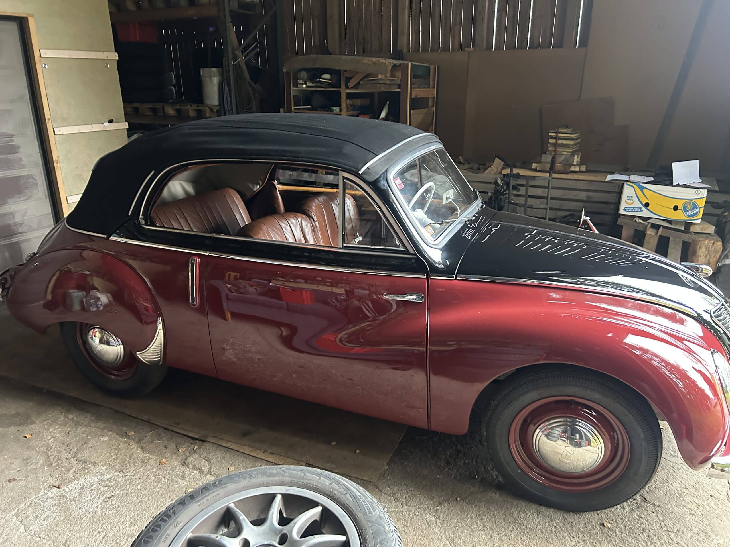 We have a very nice IFA F9 Cabrio with beautiful violet and black paint, and lovely brown interior. This vehicle was sold new in Finland and has had only three main owners.